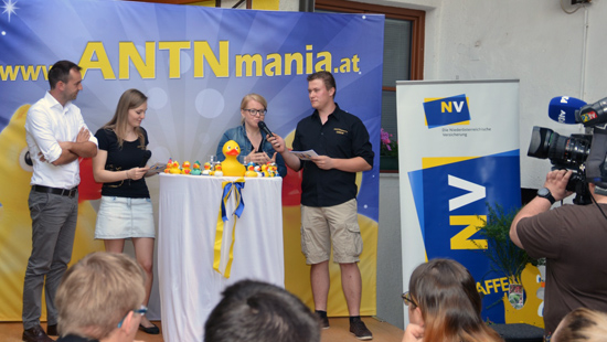 Zur Einstimmung gab es einen Video-Rückblick. Die anfängliche Motivation, die in Österreichs Badezimmern spärlich gewordene Quietschente vor dem Aussterben zu retten, trug bald Früchte. Die ANTN setzte zu einem Erfolgslauf rund um den Globus an. Im Jahr 2015 konnte erstmals Entwarnung gegeben werden: